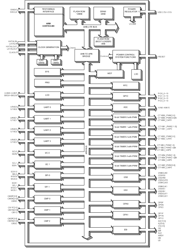 (64DMIPS)。SN32F780系列单片机IC结构一流,包括128KB Flash ROM程序内存、32KB RAM程序内存、巢状向量中断控制单元(NVIC)、六组16位定时器、通讯接口包括两组I2C、两组SPI、四组UART、两组I2S、三组比较器、两组运算放大器、EBI界面、4x40/6x38/7x37/6x36