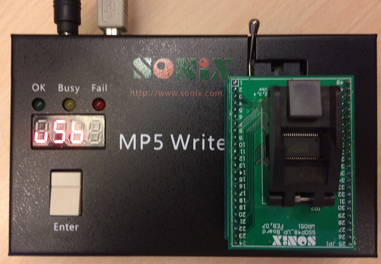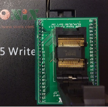打开刻录器上盖,插入与IC型号相对应刻录转板,如下图所示。详情请参考刻录器使用手册。