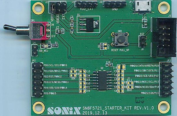 Assort with SN-LINK-V3 and support emulate SN8F5721 MCU. This Kit can provide the I/O ports for function test and other applications of users.