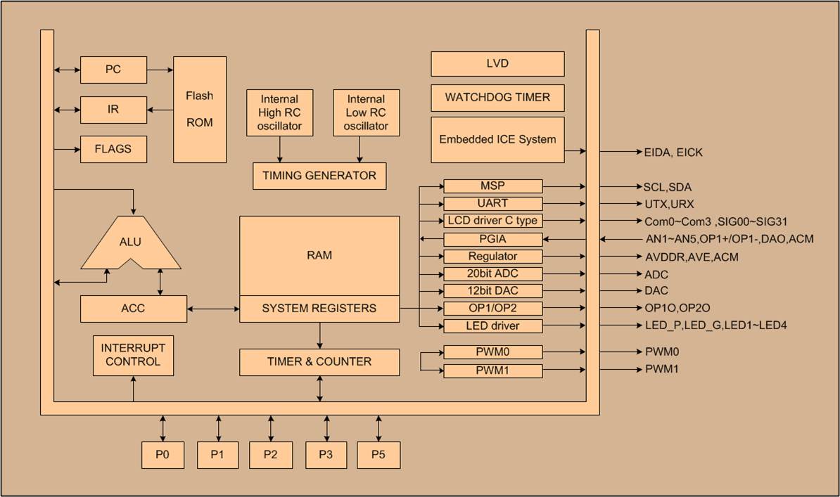 (IHRC 8MHz). The low-speed system clock is generated from on-chip low speed RC oscillator
