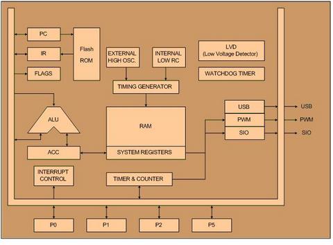 產品描述SN8F2250B是一个8位微控制器。结构独特,采用CMOS技术,具有低功耗、高性能的特点。 SN8F2250的IC结构设计一流,包括一个大容量(10K-word)的程序内存(Flash ROM),512-byte的数据存储器与8层堆栈缓存器。四个定时器T0、T1、TC0、TC1,一个看门狗定时器,SIO传输接口以及全速USB传输接口。