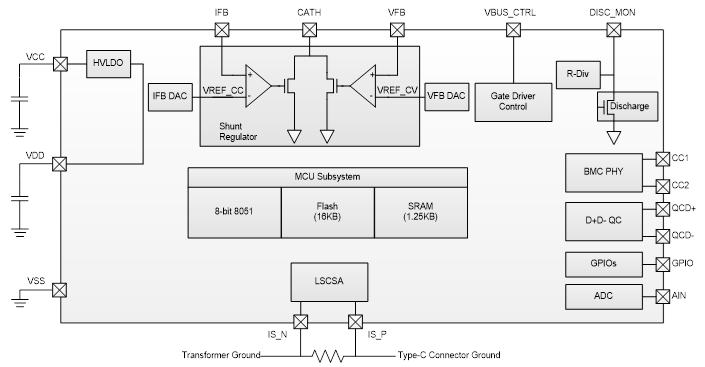 SNPD1730系列是高度集成的USB Type-C端口控制器,符合最新的USB Type-C和Power Delivery(PD)標準。 SNPD1730系列採用SONiX專有的8051技術,內部為8位元的8051處理器、與16 KB內存快閃記憶體編程存儲器,完整的Type-C USB-PD收發器,且整合回授控制電路於輸出電壓(VBUS)調節, 以及Type-C端口所需的所有終端電阻。 SNPD1730系列具有多個I / O阜口可提供使用,且具有高度整合的BOM和ESD保護於系統上的應用。SNPD1730系列是非常適合電源適配器應用。